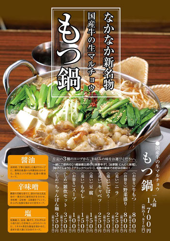 なかなかの牛もつ鍋は年間を通してご提供しております!